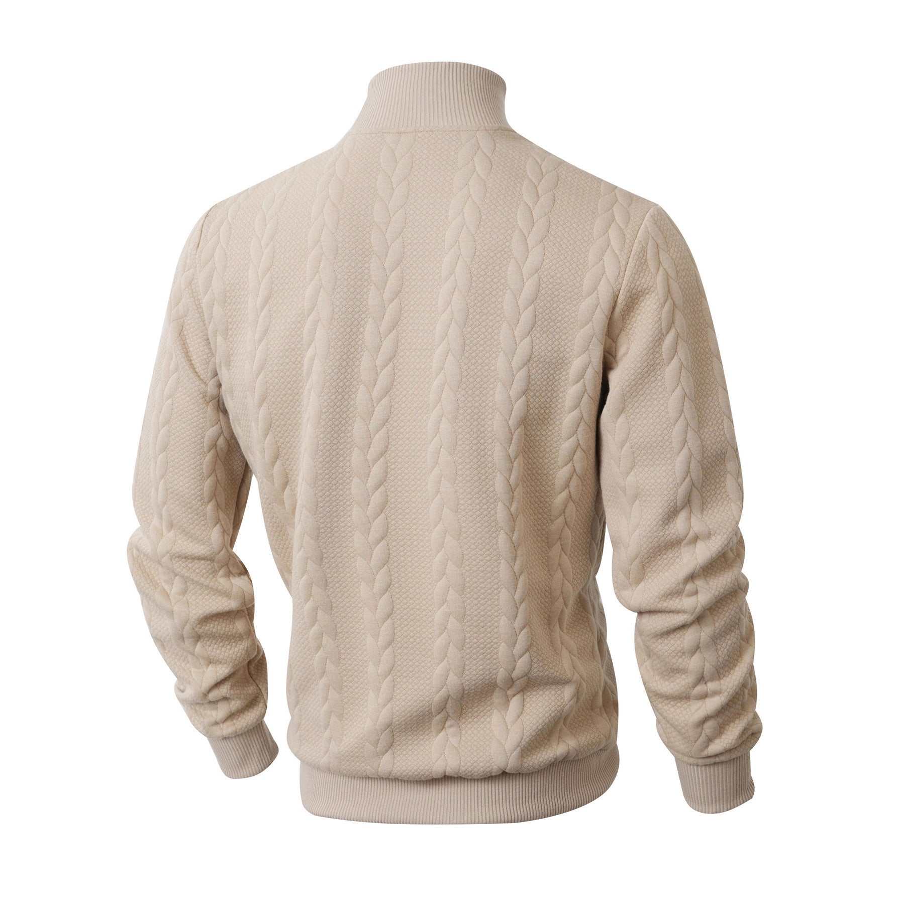 “Stay warm in style with this high-collar jacquard knit sweater — sleek, soft, and made for modern men.”
